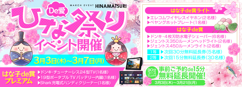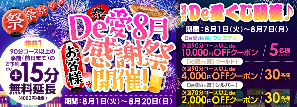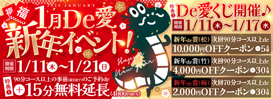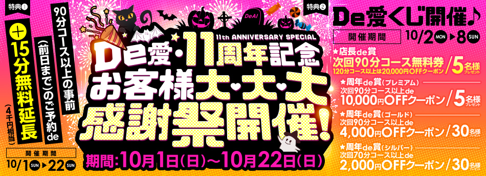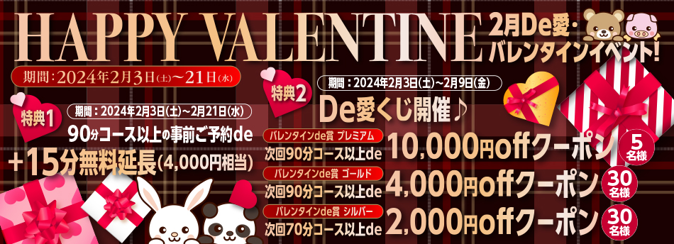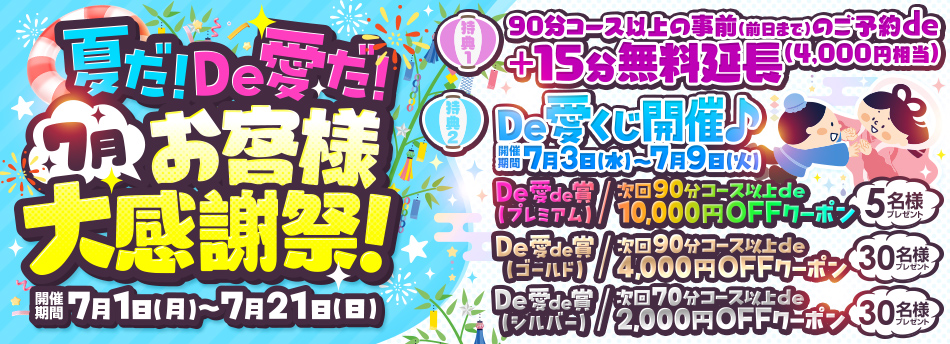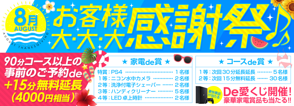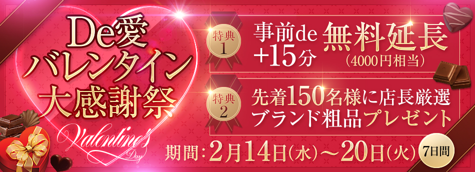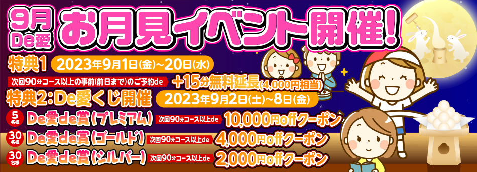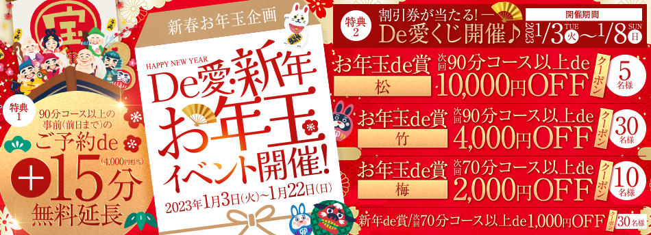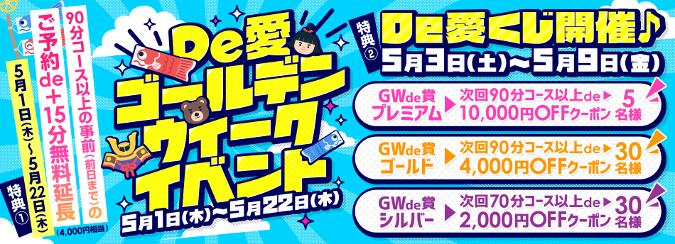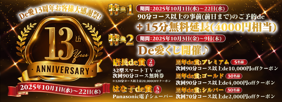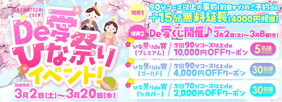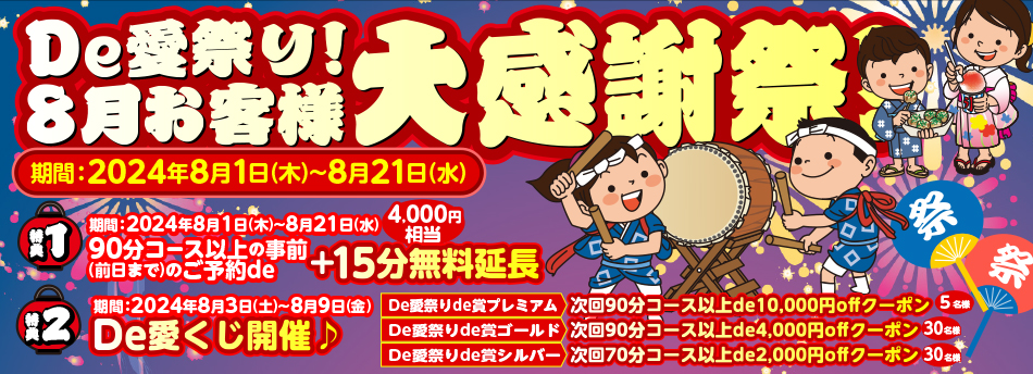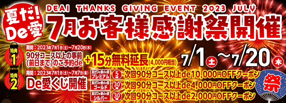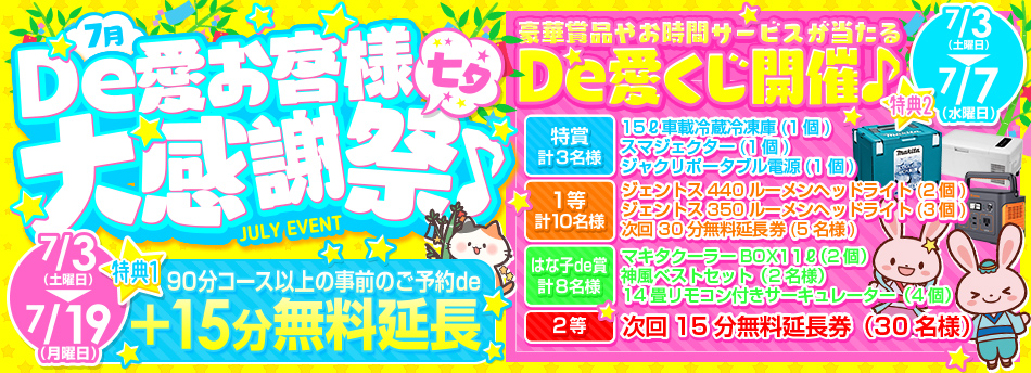 特典:90分コース以上の事前(前日まで)のご予約de+15分無料延長(4000円相当)