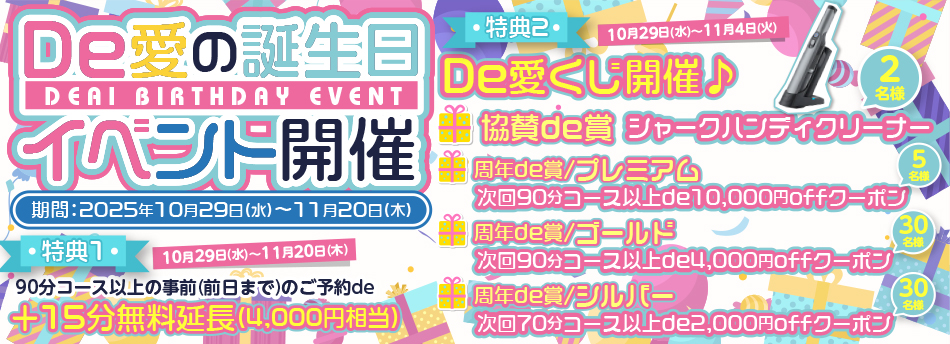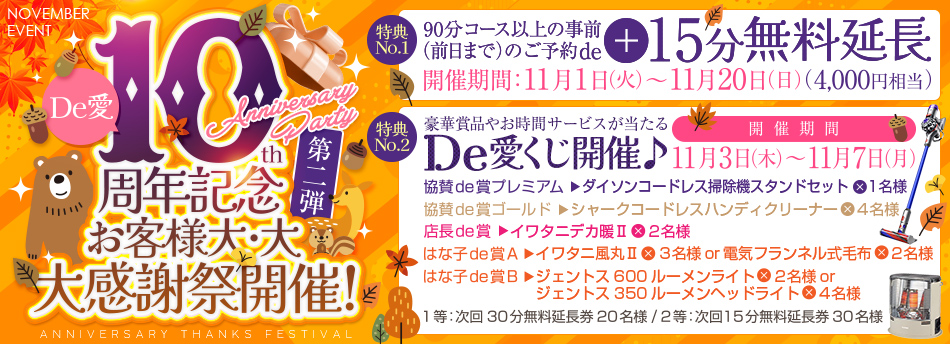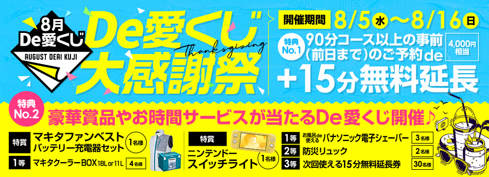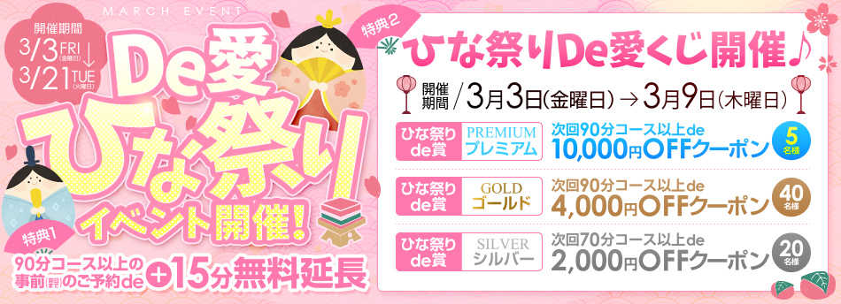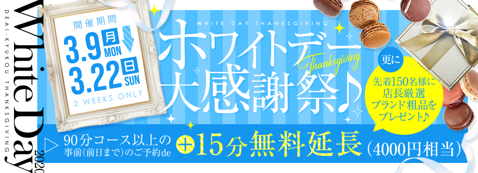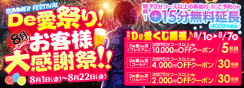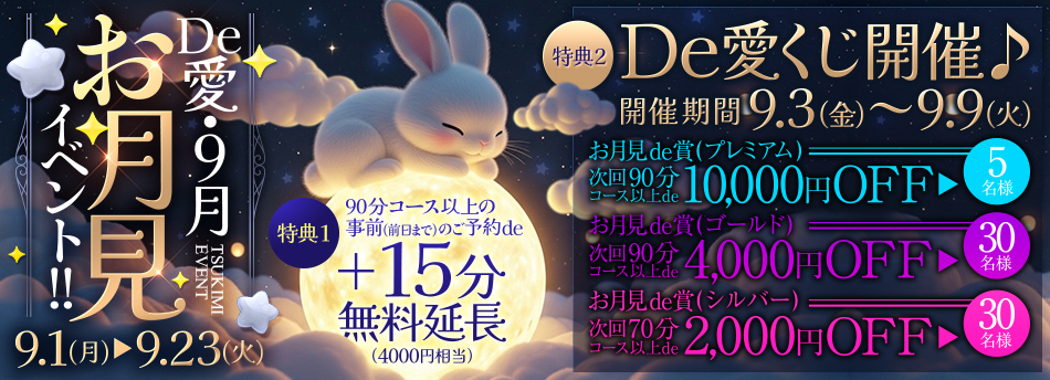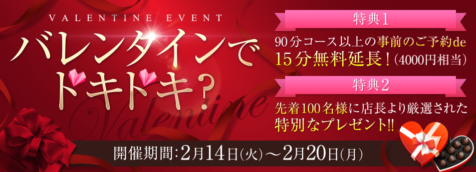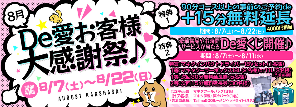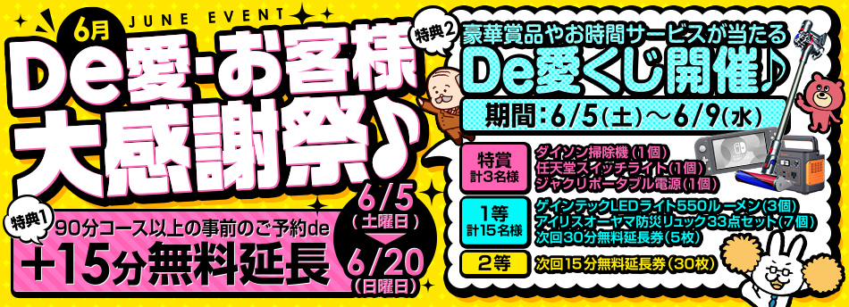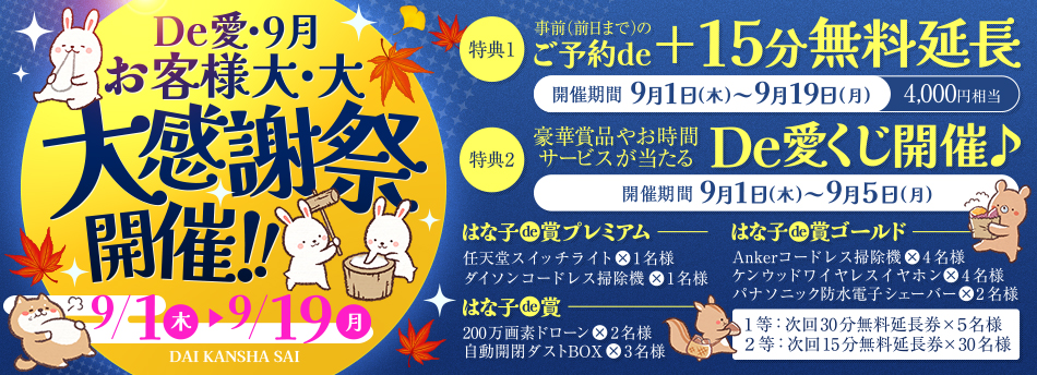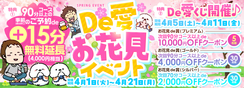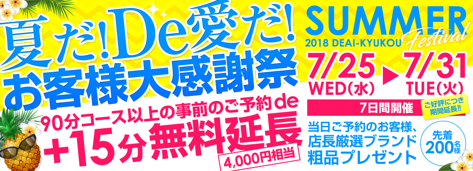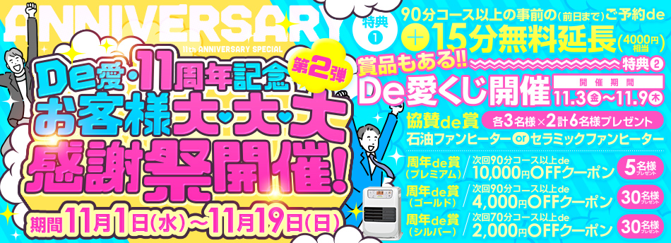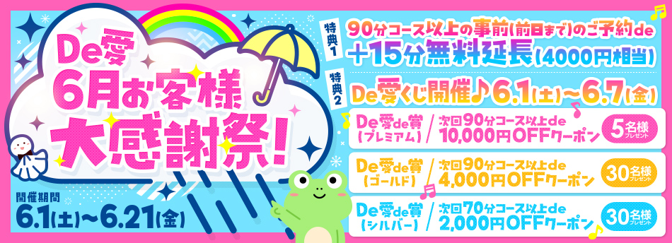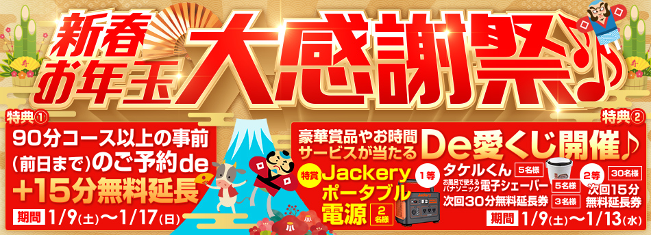 特典:90分コース以上の事前(前日まで)のご予約de+15分無料延長(4000円相当)