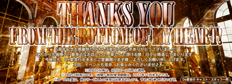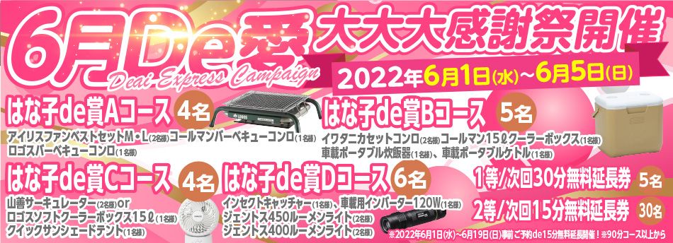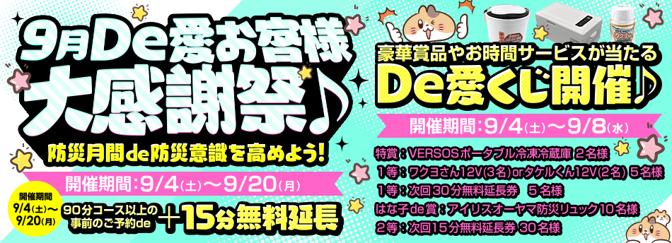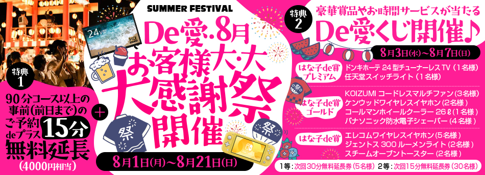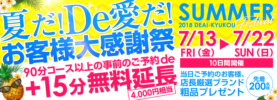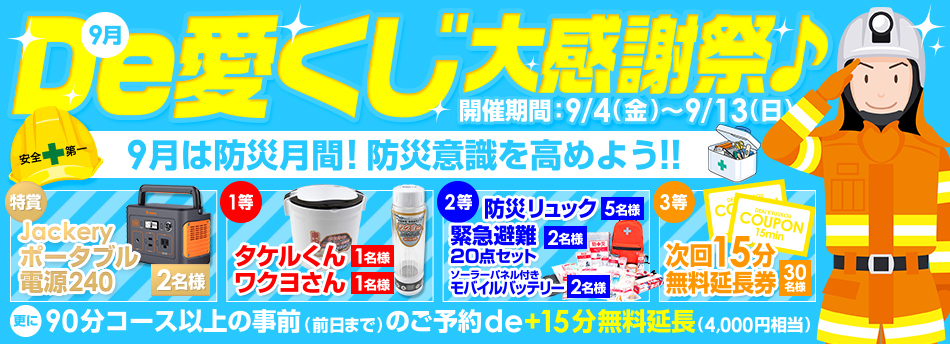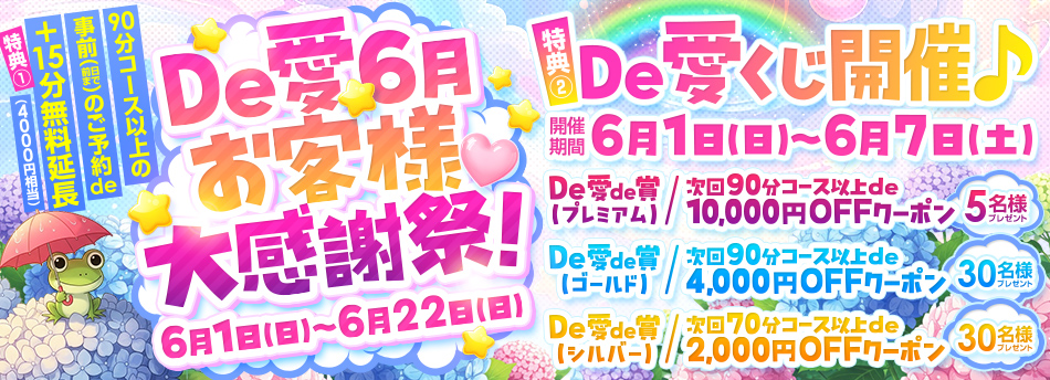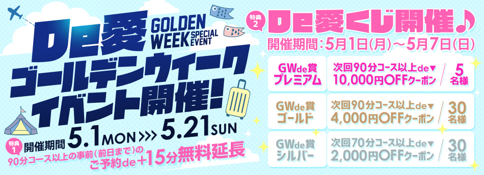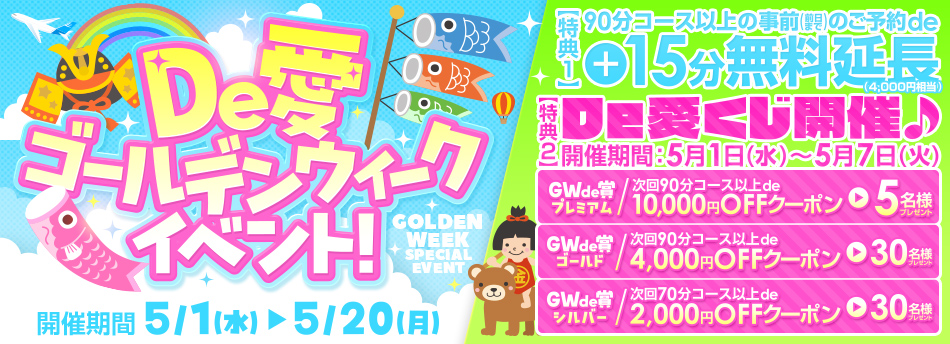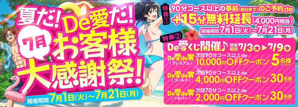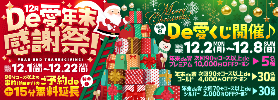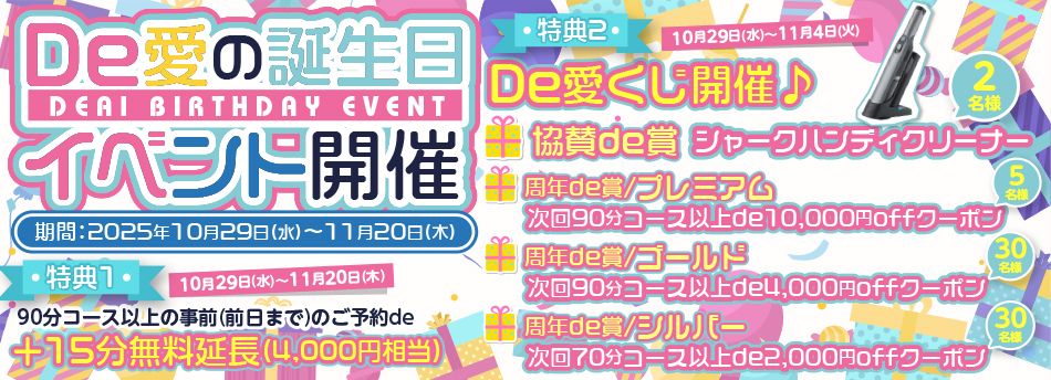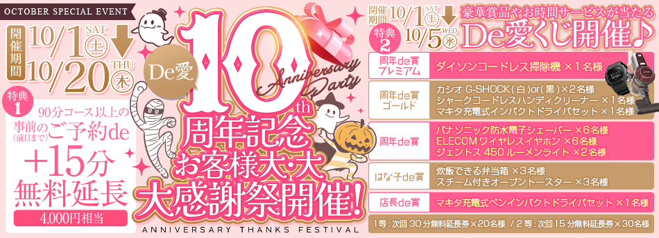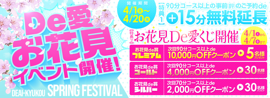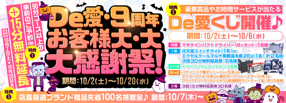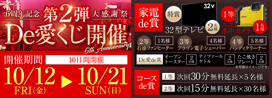 特典:90分コース以上の事前(前日まで)のご予約de+15分無料延長(4000円相当)